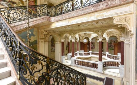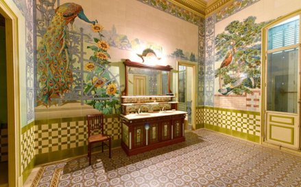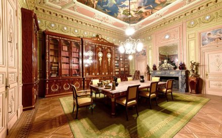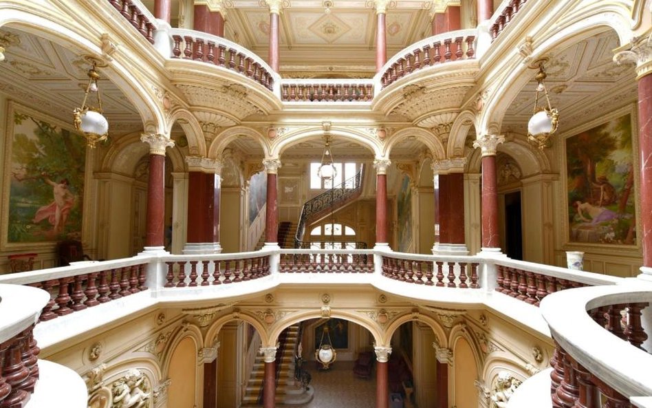 W pałacu zachowało się oryginalne wyposażenie i wystrój: sztukaterie, mozaiki podłogowe, zdobienia z drewnianej mozaiki, a także kości słoniowej i złota, marmurowe kominki i niezliczone freski namalowane przez modnych paryskich artystów epoki, min Henry'ego Perraulta. W przestronnych holach i salonach wciąż wiszą oryginalne żyrandole kryształowe. Część pomieszczeń ma przeszklone sufity, a do dyspozycji mieszkańców jest 14 sypialni, duża jadalnia, sala do bilarda, sala muzyczna, sala kinowa, biblioteka wyłożona drewnianymi panelami oraz kilka salonów, a także piwnica win.