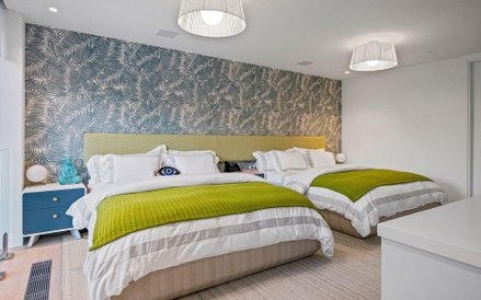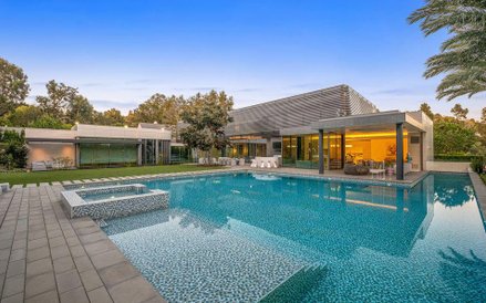 Posiadłość jednego z najbardziej znanych producentów Hollywood, to prawdziwe nowoczesne dzieło sztuki architektonicznej. Ma powierzchnię niemal 1500 metrów kwadratowych, na których rozmieszczono: siedem sypialni, 10 łazienek, ogromny salon z wyjściem na taras, kuchnię, jadalnię, dwie duże garderoby, a także boisko do gry w hokeja, siłownię, sale kinową oraz piwnicę win. Dom jest nowoczesny, przeszklony i bardzo funkcjonalny.