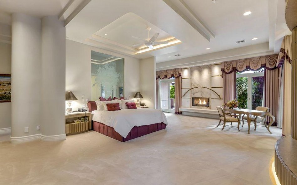 W głównej, największej sypialni jest kominek, aneks kuchenny oraz ogromna garderoba i wyłożona marmurem oraz złotem łazienka. Dla wygody mieszkańców w domu zainstalowano też windę, żeby nie musieli bez przerwy biegać po marmurowo-granitowych schodach.