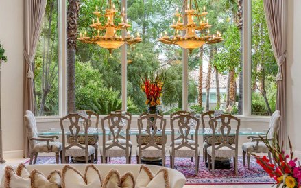 Rezydencja przy Greensboro Lane ma osiem sypialni, dziewięć łazienek, nowoczesną kuchnię z pomieszczeniem do głębokiego zamrażania, jadalnię z przeszklonym sufitem, ogromny salon oraz pomieszczenia gospodarcze - pralnię, garaż na sześć samochodów, specjalny system do filtrowania wody oraz system centralnego odkurzania.
