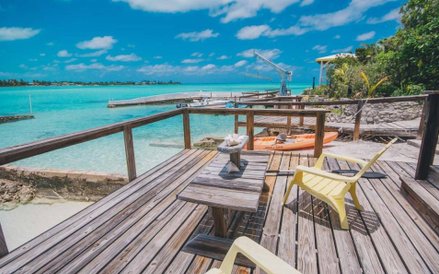 Drewniano-kamienny dom stojący na wyspie ma dwie sypialnie, dwie łazienki, salon z kominkiem, bibliotekę, w pełni wyposażoną kuchnię z jadalnią, a przede wszystkim wspaniałe dwa tarasy z widokiem na lazurowe morze, oraz na piękne, piaszczyste białe plaże. Budynek został wybudowany w 1954 roku przez ówczesnego właściciela wyspy, pisarza Nelsona Hayesa. Na podstawie jednej z jego powieści nakręcono w 1941 roku popularny film "Bahama Passage".