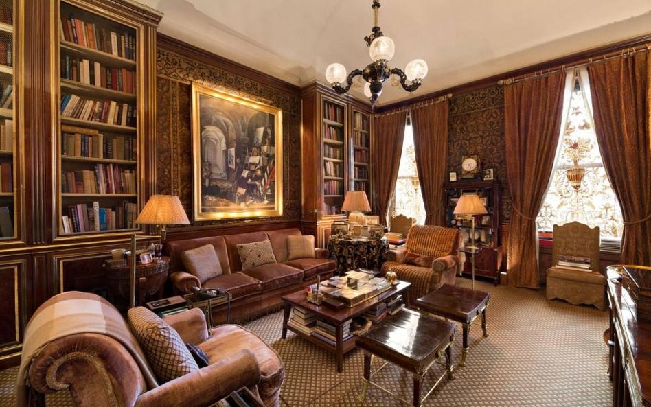 Dwie kondygnacje luksusu i zbytku na około 1115 metrach kwadratowych. Apartament ma 20 pomieszczeń mieszkalnych, w tym 7 sypialni, 7 łazienek, 3 toalety, biblioteka w stylu barokowym, dwa salon z kominkami - w tym jeden ogromny o długości ponad 15 metrów, duża jadalnia z przepięknym widokiem na Central Park i Manhattan oraz kominkiem, a także pracownia i biuro.