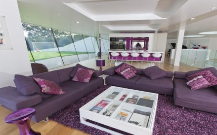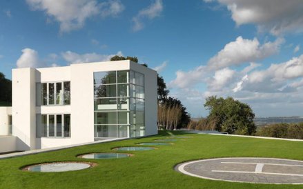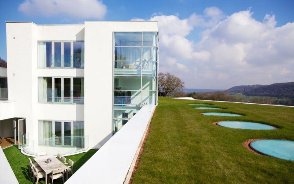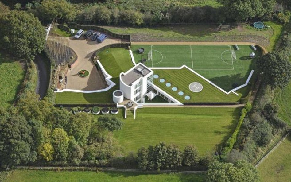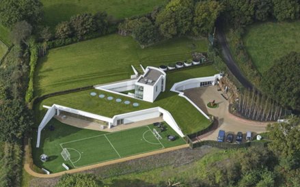 Na dachu domu jest lądowisko dla helikopterów, a w ogrodzie pełnowymiarowe boisko do piłki nożnej. Dom częściowo pokryty jest trawnikiem, który rośnie na dachu.