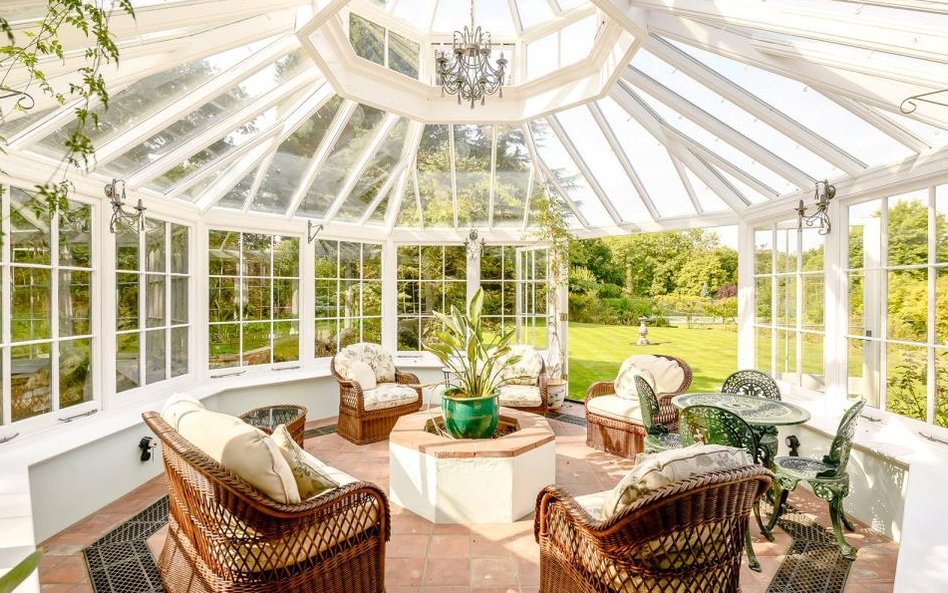 Okazały, dwupiętrowy dwór z czerwonej cegły ma powierzchnię około 640 metrówk wadrtyowych - w tym siedem sypialni, cztery łazienki, przestronny hol wejściowy, kuchnię, jadalnię oraz obszerny salon z dużym kominkiem. Są jeszcze dwa dodatkowe salony, biuro, spiżarnia, piwnica win oraz zabudowana, przeszklona weranda.