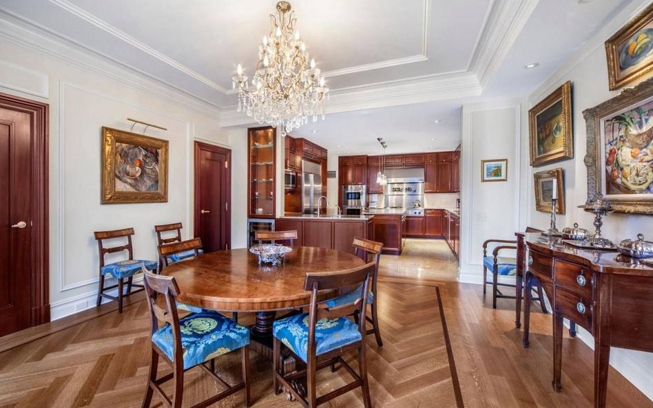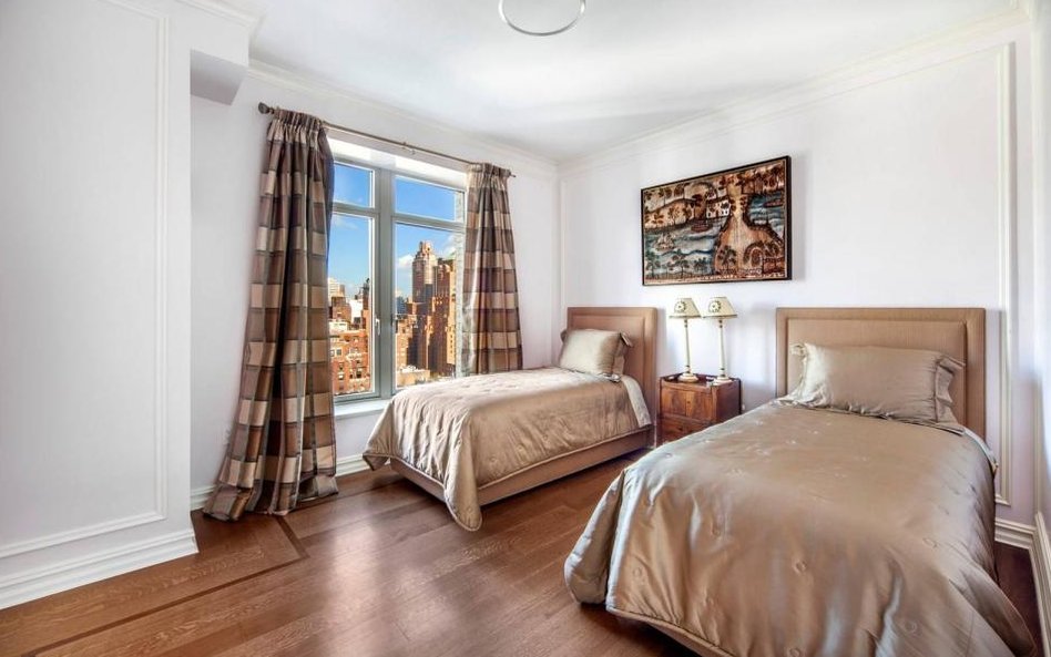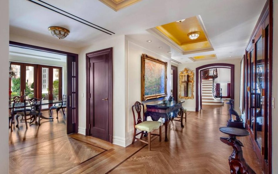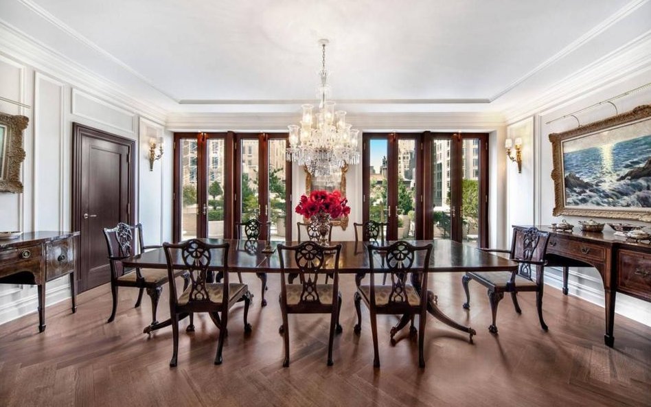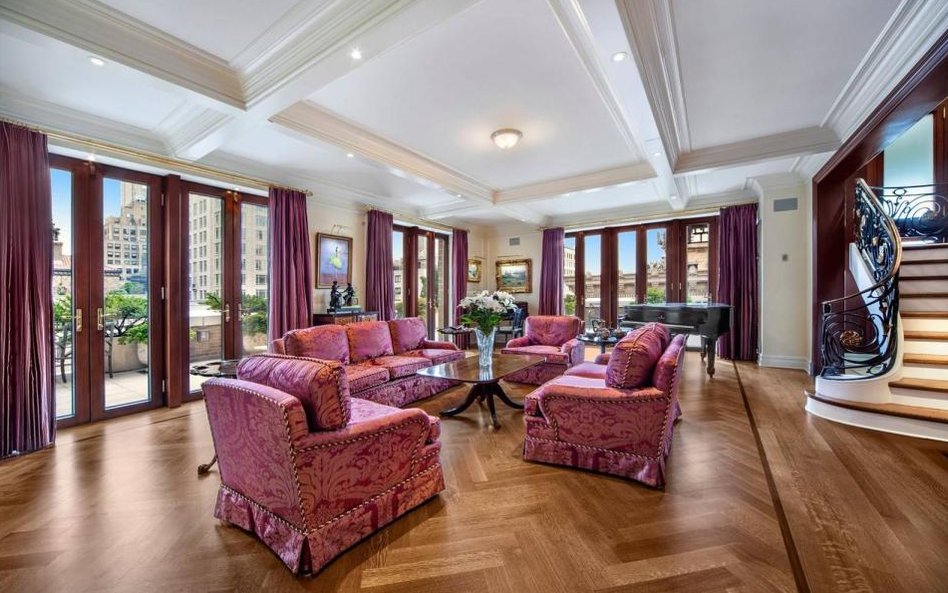 Dwupoziomowy apartament znajdujący się przy Park Avenue i 60th Street, ma powierzchnię ponad 550 metrów kwadratowych - w tym 7 sypialni, 6 łazienek, dwie oddzielne toalety, duży salon z kominkiem, bibliotekę, która jest też pokojem bilardowym, duża jadalnię, dużą i nowoczesną kuchnię z częścią jadalną. Są też pomieszczenia dla służby, sala telewizyjna, pracownia oraz gabinet.