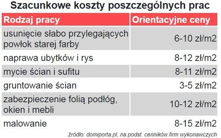 Stawki za tego typu usługi, jak podkreśla Beata Zielińska, różnią się w poszczególnych regionach. - W wielu ogłoszeniach znajduje się wzmianka, że ostateczny koszt zależy m.in. od stanu ścian, wielkości zlecenia, szczegółowych wymagań klienta - wyjaśnia. - Większość fachowców oferuje kompleksową usługę, łącznie z zakupem farby i posprzątaniem po zakończonym malowaniu.Wybór farby zależy w dużej mierze od tego, jakie pomieszczenie chcemy pomalować. Inna sprawdzi się w kuchni i łazience, inna w salonie, a jeszcze inna w przedpokoju. Ważny jest również efekt, jaki chcemy uzyskać- ściany matowe, półmatowe czy z połyskiem. Zazwyczaj bardziej opłaca się kupić farbę w większym opakowaniu. Tańszy jest też zakup gotowego produktu. Farby przygotowywane na zamówienie w mieszalniku mogą być droższe o 15-20 proc. - dodaje.