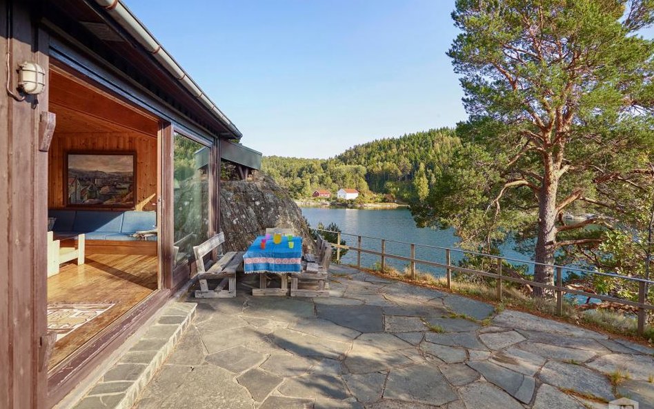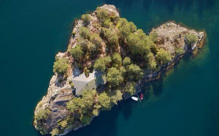 Na skalistej wyspie jest dom oraz przystań dla łodzi, które są jedynym sposobem dostania się na stały ląd.