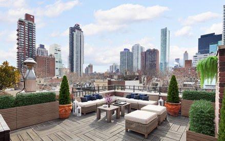 Na dachu budynku jest taras z którego można podziwiać panoramę Manhattanu.