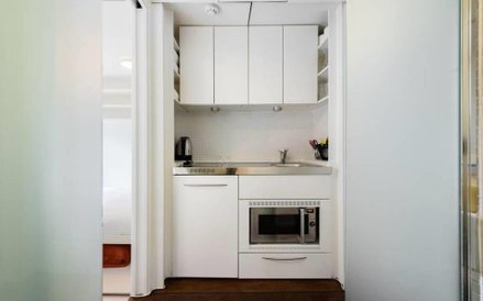 Serwis nieruchomościowy Zoopla oferuje na sprzedaż miniaturowe mieszkanie w dzielnicy Kensington. Mikroapartament jest naprawdę mikro. Na stronie nie ma informacji jaka ma powierzchnię. Ze zdjęć wynika jednak, że składa się z części mieszkalno-sypialnej w której po rozłożeniu kanapy nie zostaje dużo miejsca orz łazienki (prysznic, wc i umywalka) oraz wnęki kuchennej znajdującej się zaraz za progiem. Wielkością przypomina raczej schowek na szczotki, niż mieszkanie. Znajduje się na drugim pietrze eleganckiej kamienicy przy Longridge Road.