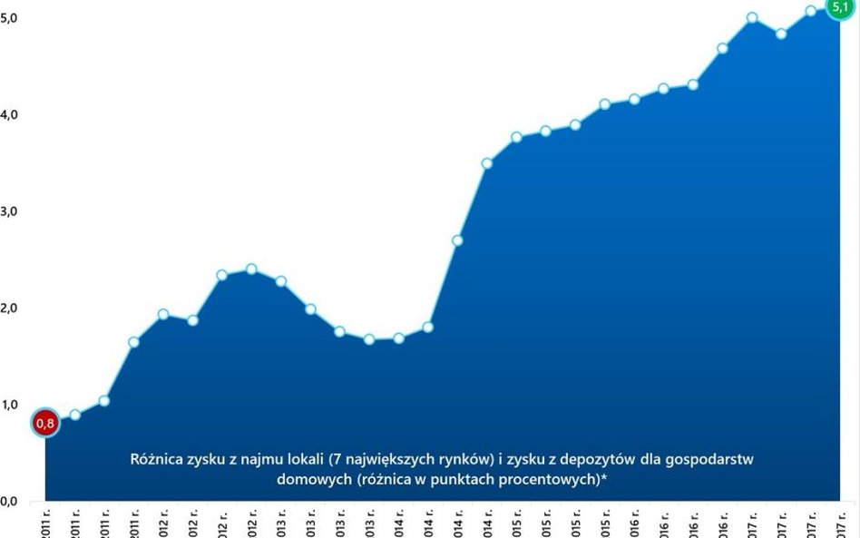 Opublikowane niedawno przez NBP wyniki analizy z całą pewnością mogą ucieszyć wynajmujących. Roczny zysk osiągany na wynajmie mieszkań w dużych miastach jest aż o 5 pkt proc. większy niż rentowność depozytów bankowych. Tak duża różnica zyskowności najmu oraz kont i lokat może się wydawać nieco zaskakująca.