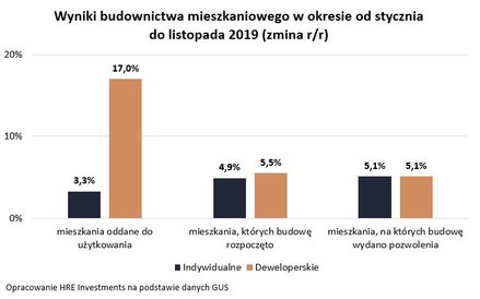 Dobre dane dotyczą też rozpoczynanych budów. - GUS informuje, że tylko w ubiegłym miesiącu deweloperzy rozpoczęli budowę prawie 13 tys. mieszkań, czyli o 16,8 proc. więcej niż w analogicznym okresie przed rokiem - mówi ekspert HRE Investments. - Dobrze wyglądają też dane zsumowane za 11 miesięcy. Deweloperzy rozpoczęli w tym czasie budowę ponad 130,4 tysięcy mieszkań, czyli o 5,5 proc. więcej niż w analogicznym okresie dobrego dla deweloperów roku 2018.