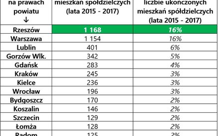 To nie oznacza jednak, że spółdzielnie mieszkaniowe we wszystkich polskich miastach ograniczają się tylko do zarządzania malejącą liczbą mieszkań wybudowanych 30 lat - 50 lat temu. Analiza naszego portalu wskazuje, że w kilku miastach aktywność inwestycyjna spółdzielni jest znacznie większa od średniej.