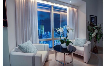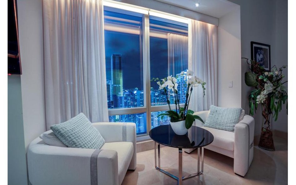 Apartament, który znajduje się w Four Season Residences, jest niezwykły i piękny. Składa się między innymi z dwóch sypialni, salonu, dwóch łazienek, oddzielnej toalety, dużej garderoby i kuchni. Ma powierzchnię niemal 200 metrów kwadratowych. Jego chyba największym atutem są panoramiczne okna, z których widać Miami. Poza tym apartament ma marmurowe podłogi.