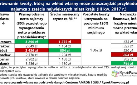 Wielu młodych Polaków traktuje najem mieszkania jako przejściowe rozwiązanie. Ze względu na przywiązanie do własności i słabo rozwinięty rynek wynajmu, takie osoby często starają się gromadzić pieniądze przeznaczone na wkład własny do kredytu. Czy w takiej sytuacji można pogodzić konieczność zapłaty czynszu z oszczędzaniem w na własne mieszkanie? Wyniki analizy dotyczącej przykładowego najemcy nie przedstawiają się szczególnie optymistycznie.