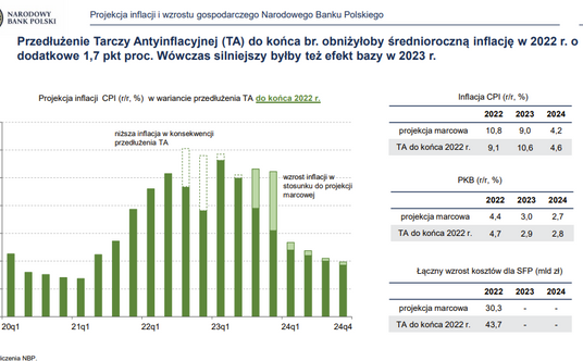 Dochodzimy do istoty wiszącego nad finansami publicznymi ryzyka „kuli śniegowej”: ryzyka powstania sprzężenia zwrotnego między inflacją, wzrostem rentowności obligacji oraz osłabieniem kursu walutowego, co mogłoby doprowadzić do kryzysu finansowego. Temat wymaga szerszego i dokładniejszego omówienia, dziś skupmy się na ukazaniu jego istoty. Budżet naszego państwa został obciążony dodatkowymi wydatkami (500+ to 40 mld zł rocznie, „trzynastki” to ok. 12 mld zł, koszt Polskiego Ładu to co najmniej 31 mld zł rocznie od 2023 r., a do tego w tym roku mamy jeszcze „tarczę antyinflacyjną” za ponad 40 mld zł rocznie oraz bliżej nieokreśloną kwotę na koszty wojny na Ukrainie), dla których finansowania nie znaleziono trwałych źródeł. Osławione „uszczelnienie podatków” to niewielka część sumy dodatkowych wydatków.