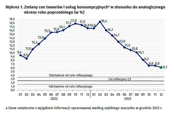 Spadek rocznego wskaźnika inflacji do 6,1 proc. w grudniu 2023 r., z 6,6 proc. w listopadzie, zaskoczył ekonomistów, którzy obstawiali średnio ok. 6,5 proc. Ale może nie powinien, skoro odbicie konsumpcji u progu zimy nie było tak silne jak się spodziewali.