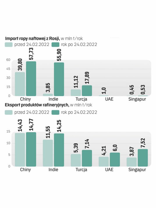 Dalej w grudniu 2022 ustanowiono pułap cenowy (price cap) na ropę z Rosji w wysokości 60 dol. na baryłkę (limit na produkty miał być określony później).