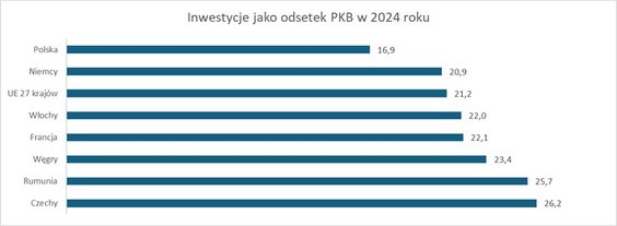 W ubiegłym roku poziom inwestycji w relacji do PKB wyniósł w Polsce 16,9 proc. – to jeden z najniższych wyników w UE (średnia: 21,2 proc.), podczas gdy np. Czechom udało się przekroczyć 25 proc. [Eurostat].