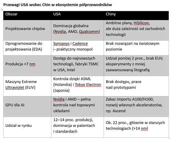 Te mikroskopijne struktury, mierzone w nanometrach, decydują o potencjale obronnym państw, innowacyjności przemysłu i tempie rozwoju sztucznej inteligencji. W tej perspektywie rywalizacja między Stanami Zjednoczonymi a Chinami o kontrolę nad światowym łańcuchem technologicznej wartości nabiera wymiaru strategicznego. Stawką jest nie tylko wymiana dóbr, , ale gra o kształt porządku technologicznego, który zdefiniuje kolejne dekady.