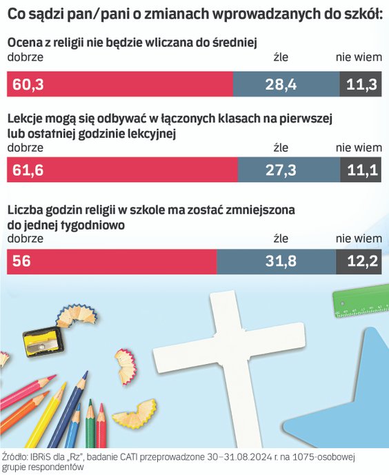 Temat nauczania religii w szkole sprowadzony został do sporu o liczbę godzin lekcyjnych. Panie kierujące Ministerstwem Edukacji nie ukrywają, że chętnie by nauczanie religii z publicznej szkoły wyrzuciły. Ponieważ jednak zapisy konkordatu na to nie pozwalają, z wyraźną przykrością godzą się na pozostawienie jednej godziny w tygodniu, przywracając jednocześnie na potrzeby katechezy dawno zapomniany system klas łączonych. Argumenty zgłaszane przez Episkopat (bo sprawa przedstawiana jest przez polityków i wielu dziennikarzy jako spór rządu z biskupami) pani minister Barbara Nowacka kwituje elegancko: to jest wycie o kasę.