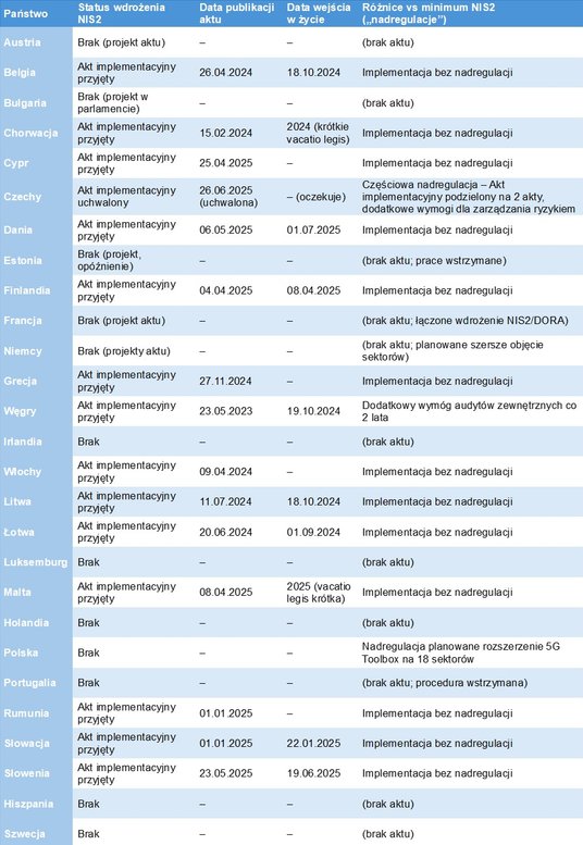 Integracja zaleceń odnoszących się do infrastruktury telekomunikacyjnej z wdrożeniem NIS2 i rozszerzenie ich na 18 sektorów gospodarki stanowią precedens w skali całej UE. Być może to ambitne, ale i ryzykowne posunięcie, gdyż inne kraje podeszły zdecydowanie ostrożniej, ograniczając się do wymogów NIS2.