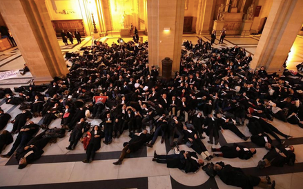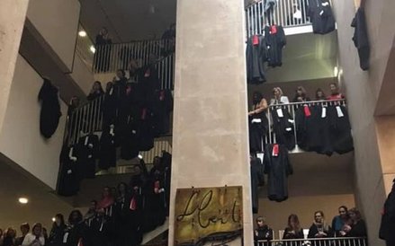 Adwokaci podczas protestu na paryskich ulicach i w gmachu sądu apelacyjnego