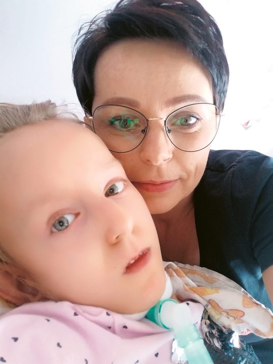 Mówi tak, choć w bloku nie ma windy, a trzecie piętro długo przecież było dla nich barierą trudną do pokonania, bo młodsza Zuzia ma zespół Leigha (encefalopatię martwiczą), chorobę genetyczną, która degeneruje układ nerwowy. Od lat nie chodzi, nie wstaje, porusza się dużą spacerówką, razem z wózkiem i respiratorem waży prawie 50 kilogramów.