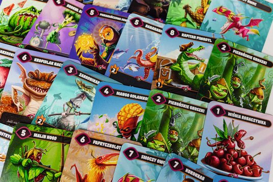 Seria „Mindbug” oczywiście doczekała się już wielu odsłon, a każda z nich delikatnie różni się zasadami, dzięki czemu podstawowa mechanika nabiera innych rumieńców. Tak samo jest w przypadku „Mindbug: Bojowoce Galaktyka” oraz „Mindbug: Bojowoce Królestwo”. Co do ich klimatu: stwory są owocowo-warzywne, czyli cebularze, zupiarze, krwiożercze truskawki i ananasy…