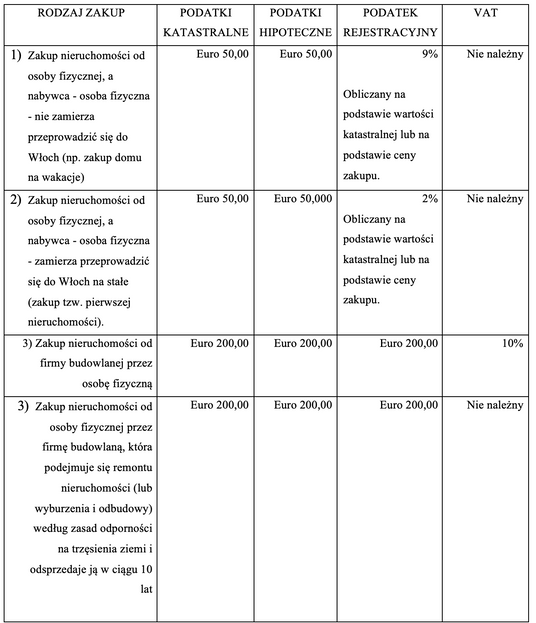 Włoskie podatki mające zastosowanie do aktu kupna i sprzedaży to podatki pośrednie, które można sklasyfikować w następujący sposób: