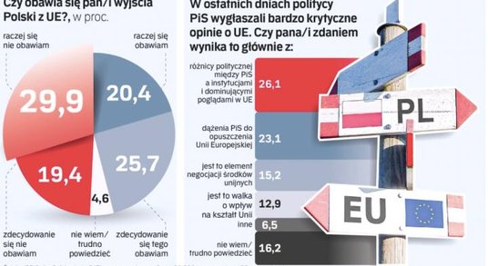 Najgłębszy podział istnieje między wyborcami PiS i KO. Ci ostatni są przekonani o tym, że PiS chce polexitu (54 proc.), a głosujący na partię Jarosława Kaczyńskiego w to nie wierzą (8 proc.), za to aż jedna czwarta tej grupy nie rozumie twardych wypowiedzi polityków PiS.