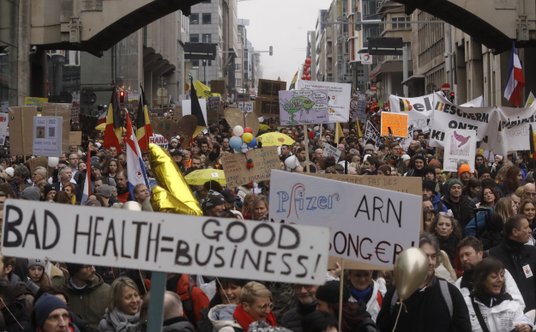 Organizatorzy - organizacja Europeans United, oddziały World Wide Demonstration oraz kilkaset stowarzyszeń z całej Europy - spodziewali się 100 tysięcy uczestników, według policji w proteście wzięło udział ok. 50 tys. osób. Początkowo demonstracja miała charakter pokojowy. Manifestanci z wielu państw przeszli ulicami miasta od dworca Bruxelles-Nord w kierunku parku du Cinquantenaire, następnie wygłoszone zostały przemówienia.