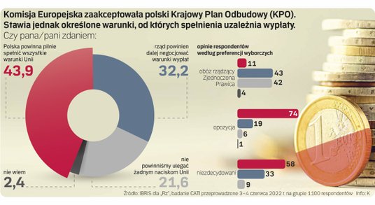Komisja nie wycofuje się z poparcia, ale ta krytyka już odniosła pierwszy efekt. Bruksela zapewnia, że bardzo skrupulatnie oceni nowe polskie prawo, zanim wypłaci pierwsze pieniądze. 17 czerwca polskie KPO ma zatwierdzić unijna Rada, czyli ministrowie finansów państw UE. Na razie nic nie wskazuje na to, żeby ich decyzja (potrzebna jest kwalifikowana większość głosów) była negatywna. O pierwszą ratę 4,2 mld euro Polska będzie mogła wystąpić we wrześniu i wtedy będzie musiała wykazać, że nowy system dyscyplinarny w sądach wypełnia warunki postawione przez KE.