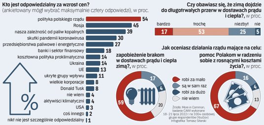 Rząd przekonuje, że robi wszystko, by zaradzić kryzysowi. Ale Polacy raczej w te zapewnienia nie wierzą. Aż 59 proc. ankietowanych twierdzi, że władza robi za mało, by zapobiec potencjalnym brakom w dostawach ciepła i prądu zimą. Tylko 17 proc. uważa, że działania rządu są w sam raz.