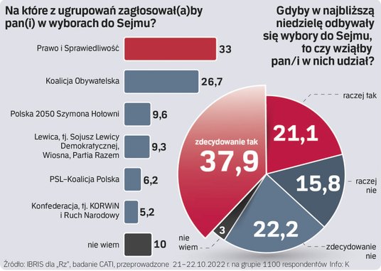 W rankingu poparcia partii politycznych nie ma wielkich zmian w porównaniu z sondażem sprzed miesiąca. Rośnie zaś chęć badanych przez IBRiS do wzięcia udziału w wyborach.