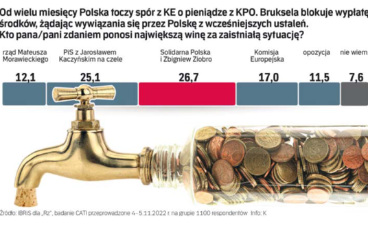W badaniu IBRiS dla „Rzeczpospolitej” zapytaliśmy, kto zdaniem wyborców odpowiada za całą sytuację. Najwięcej – bo 26,7 proc. ankietowanych – wskazuje, że za blokadę odpowiada Solidarna Polska i Zbigniew Ziobro. 25,1 proc. uznaje, że odpowiedzialny za sytuację jest PiS. 17 proc. wskazuje Komisję Europejską. 12,1 proc. uznaje, że winę w największym stopniu ponosi rząd premiera Mateusza Morawieckiego. A tylko 11,5 proc. wskazuje opozycję, chociaż w retoryce prezesa Kaczyńskiego to właśnie przede wszystkim opozycja jest winna blokadzie. Zdania nie ma 7,7 proc. ankietowanych.