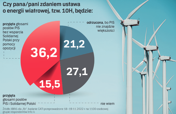 W najnowszym sondażu IBRiS na zlecenie „Rzeczpospolitej” zapytał o tzw. ustawę wiatrakową, zamrożoną w Sejmie na skutek sprzeciwu część polityków koalicji rządowej. W pytaniu wskazujemy, że „jednym z kamieni milowych, na które zgodziła się Polska w ramach KPO, jest odblokowanie ustawy o energii wiatrowej, tzw. 10H. Nie zgadza się na to Solidarna Polska ze Zbigniewem Ziobrą”. Jaki będzie los projektu?