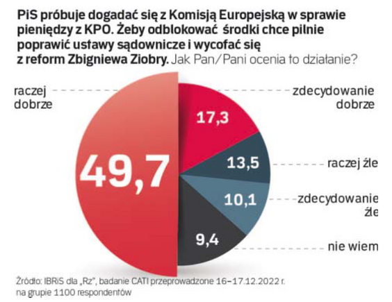 W naszym pytaniu zawarte są dwa wątki: zarówno perspektywa porozumienia z Komisją Europejską, jak i zgoda na odrzucenie zmian w wymiarze sprawiedliwości realizowanych przez ministra Zbigniewa Ziobrę. Czy wyborcy Zjednoczonej Prawicy są na to gotowi?