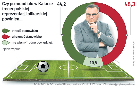 Mimo wyjścia z fazy grupowej polskiej drużyny na mundialu trener Czesław Michniewicz nie ma wśród kibiców olśniewających notowań. Według sondażu IBRiS wykonanego na zlecenie „Rzeczpospolitej”, 44,2 proc. badanych uważa, że powinien stracić stanowisko selekcjonera, 45,3 proc. uważa, że nie, a 10,5 proc. nie ma zdania.