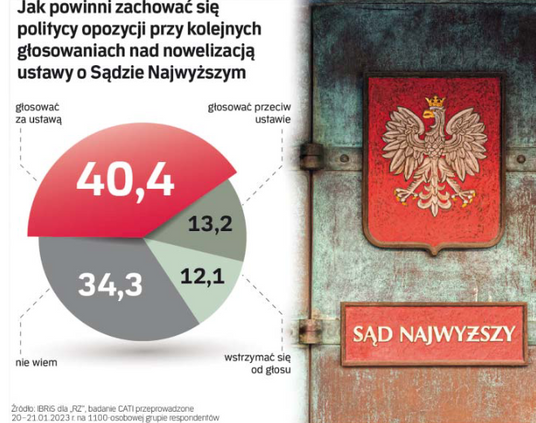 Ponad 40 proc. badanych uznało, że opozycja powinna głosować za ustawą, 13,2 proc. wskazało, że najlepiej, gdyby politycy zagłosowali przeciw, a 12,1 proc., że powinni się wstrzymać od głosu. Aż 34 proc. nie ma w tej sprawie zdania.