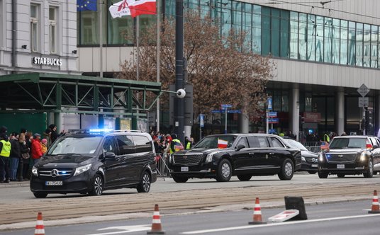 Konwój opuścił dziedziniec Pałacu Prezydenckiego i zmierza do hotelu Mariott.