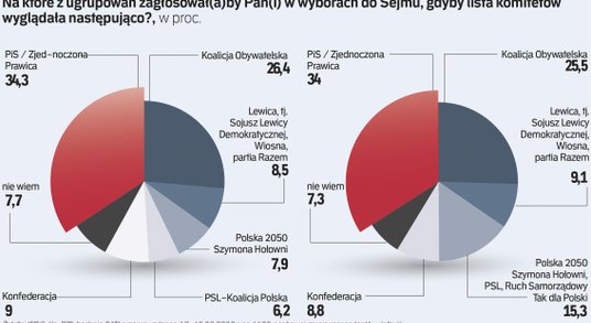 Pozycja PiS się prawie nie zmienia, a wśród partii opozycyjnych najwięcej może zamieszać wspólny...