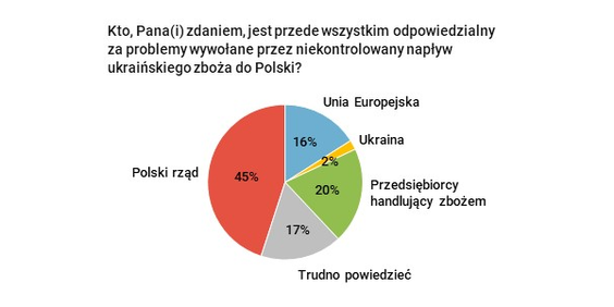 Na drugim miejscu znaleźli się (20 proc.) przedsiębiorcy handlujący zbożem, na trzecim – Unia Europejska (16 proc.). Najrzadziej zaś wymieniana była sama Ukraina (2 proc.). Prawie co piąty badany (17 proc.) nie miał na ten temat zdania.