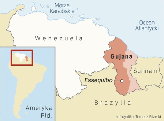 Jednak reżim Nicolasa Maduro uważa to za prowokację. Jego zdaniem bonanza odbywa się na terytorium, które powinno należeć do Wenezueli. Chodzi o region zwany Essequibo o powierzchni 160 tys. km kw., co stanowi 2/3 terytorium Gujany.