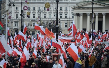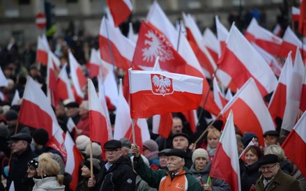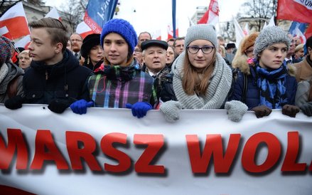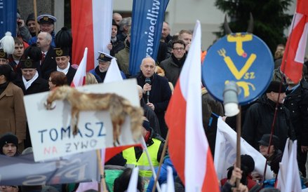Na warszawskim Placu Trzech Krzyży zgromadzili się uczestnicy Marszu Wolności i Solidarności. W rękach trzymają biało-czerwone flagi i transparenty. Przemawiali Tomasz Sakiewicz i Andrzej Gwiazda.