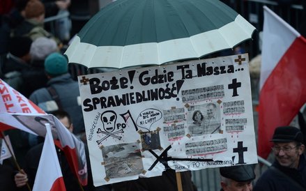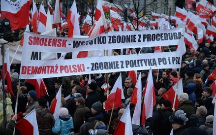 Na transparentach: "Prezydencie, jesteśmy z Tobą", "To był zamach".