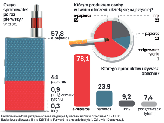 Kiedy wybuchła afera o saszetki z alkoholem, Ministerstwo Zdrowia w ciągu kilku dni zaproponowało nowelizację ustawy o wychowaniu w trzeźwości i przeciwdziałaniu alkoholizmowi, m.in. wprowadzając obostrzenia dotyczące opakowań. Takiej determinacji nie widać w sprawie jednorazowych e-papierosów, zarówno tych z tytoniem, jak i bez, które w ciągu zaledwie dwóch lat opanowały rynek papierosów w Polsce. Zapowiadany przez minister zdrowia Izabelę Leszczynę całkowity zakaz „jednorazówek” w wakacje rozszedł się po kościach.