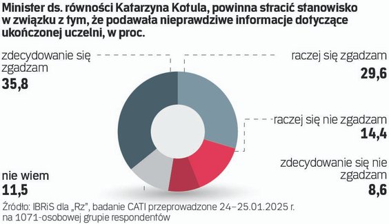 To nie przekonało ani polityków opozycji (PiS złożyło wobec niej wniosek o wotum nieufności), ani Polaków. Jak wynika z sondażu przeprowadzonego przez IBRiS na zlecenie „Rzeczpospolitej”, przeszło 65 proc. ankietowanych uważa, że Kotula powinna stracić stanowisko. Przeciwko takim drastycznym krokom jest mniej niż co czwarty ankietowany. Zdania w tej sprawie nie ma 11,5 proc. respondentów.