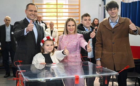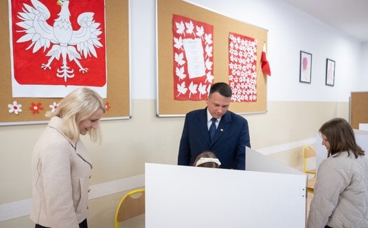Prezes IPN Karol Nawrocki z żoną Martą głosowali w jednym z lokali wyborczych w Gdańsku. Towarzyszyły im dzieci.
