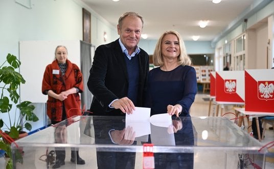 Premier Donald Tusk z żoną Małgorzatą oddali głosy w lokalu wyborczym w Sopocie.