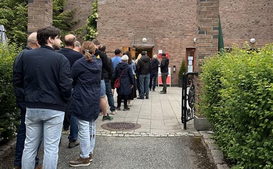 Kolejka przed obwodową komisją wyborczą w Drammen w Norwegii